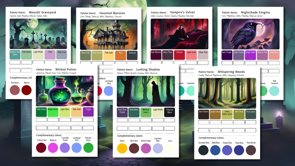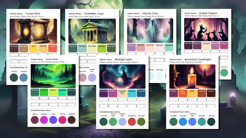 Spooky Color Palettes - 15 Exclusive Printable Color Schemes for Eerie & Magical Creations 🎃✨